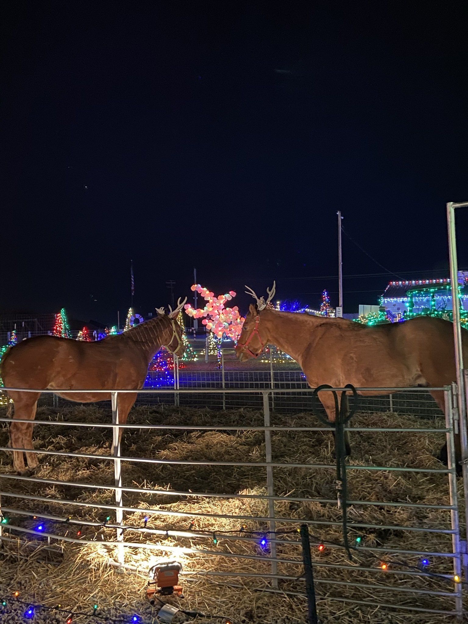 During the holiday season you can now visit Cross E Ranch for a drive through experience. This was their first year, and they did a great job. You must buy your tickets online before you arrive. You pay for a vehicle, not per person....so load up that car. While you are purchasing your tickets, don't forget to add some delicous treats to your order. We ordered a dozen of their tasty apple cider donuts that you know we love(get the glazed).