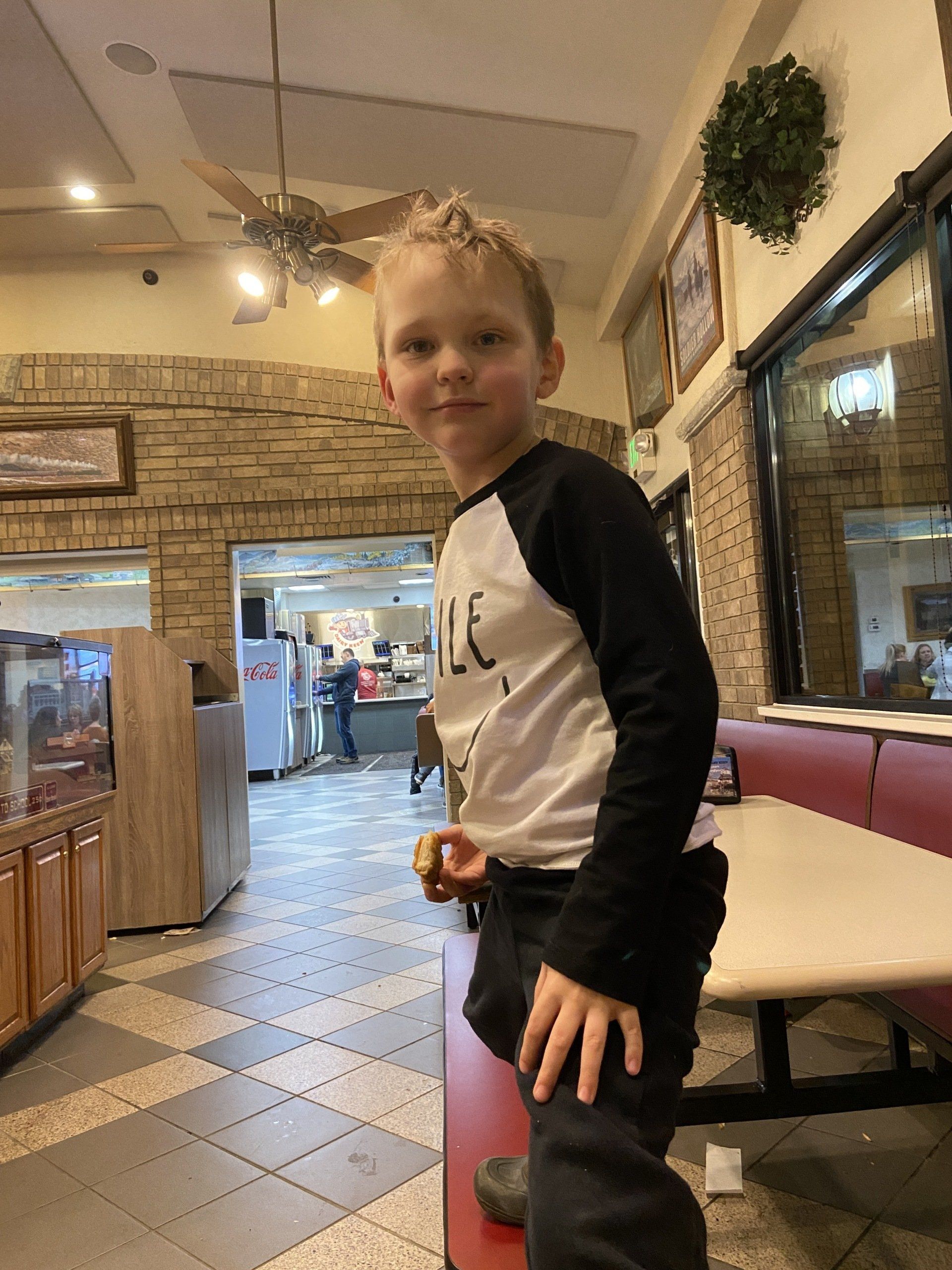 After playing hard for 2 hours, we were ready for dinner. We ate at the local favorite...Dairy Keen. It's more lovingly refered to as the Train Restaurant at our house. It's a fun little local burger joint that has trains all over. Trains to see, trains to ride, and even a train to eat out of outside. It's our Buddy's favorite, and we loved our visit.